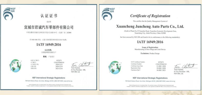 宣城市君誠汽車零部件有限公司是專業(yè)生產(chǎn)各類汽車鉸鏈及限位器的民營企業(yè),總投資3000余萬元,位于宣城高新技術(shù)產(chǎn)業(yè)開發(fā)區(qū),緊鄰宣廣、宣蕪高速公路,地理位置優(yōu)越,交通便捷。是“國家高新技術(shù)企業(yè)、知識產(chǎn)權(quán)貫標(biāo)企業(yè)、安徽省商標(biāo)示范企業(yè)、安徽省科技型企業(yè)”,已獲得國家發(fā)明專利18項(xiàng),實(shí)用新型發(fā)明專利4項(xiàng)。主要從事各類汽車門鉸鏈及限位器的設(shè)計(jì)、研發(fā)、生產(chǎn)、和銷售,具有專業(yè)的合作團(tuán)隊(duì)。自2015年正式生產(chǎn)至今,已形成一整套完整的生產(chǎn)、質(zhì)量管理體系。并已通過國家強(qiáng)制性產(chǎn)品認(rèn)證“3C”體系認(rèn)證及IATF16949國際質(zhì)量體系認(rèn)證。 在生產(chǎn)設(shè)備上,公司擁... 【查看詳細(xì)】